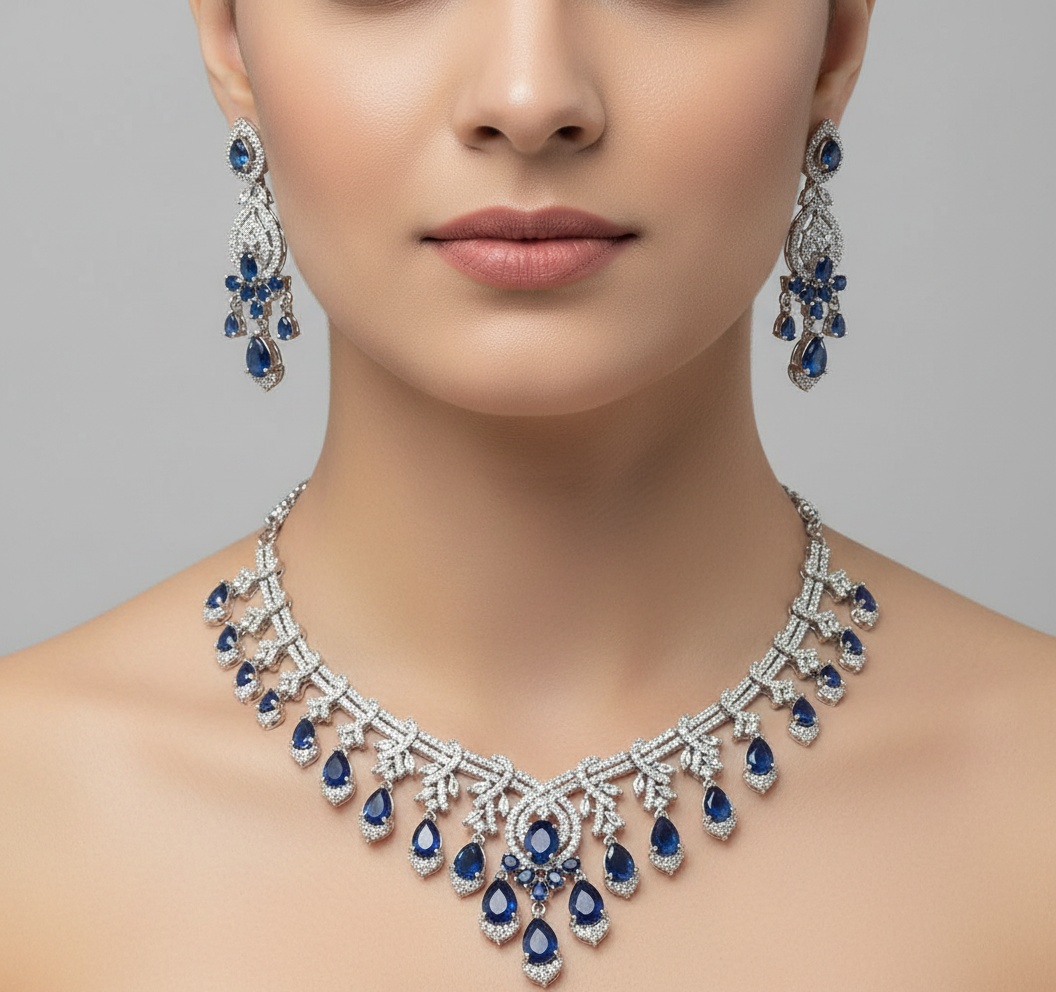 Styling the AD Necklace Set with Earrings is simple. For a chic look, wear your hair up to showcase the earrings, allowing their sparkle to shine. Alternatively, let your hair down for a more romantic vibe. The set pairs beautifully with both traditional and contemporary attire, making it a must-have accessory for every fashion-forward woman.