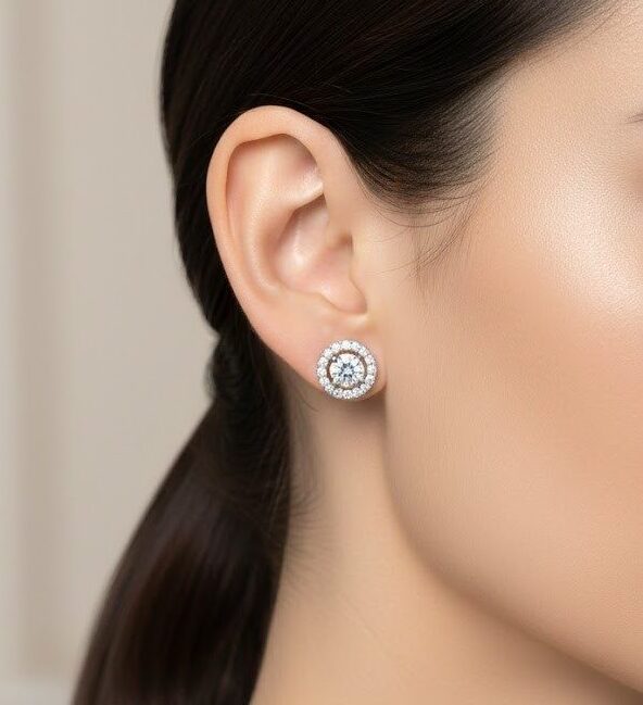 Silver Triangular Crystal Stud Earrings